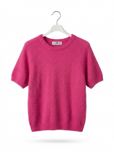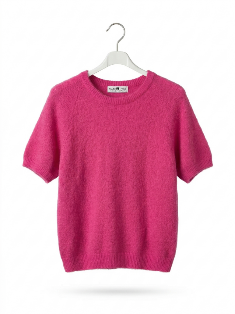 Gebreide dames top korte mouwen – Roze