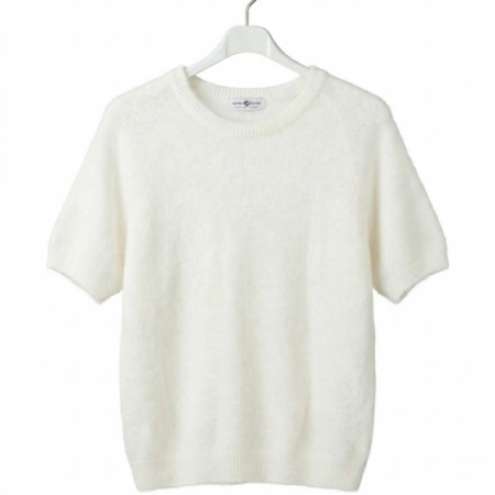 • Gebreide dames top korte mouwen – Wit