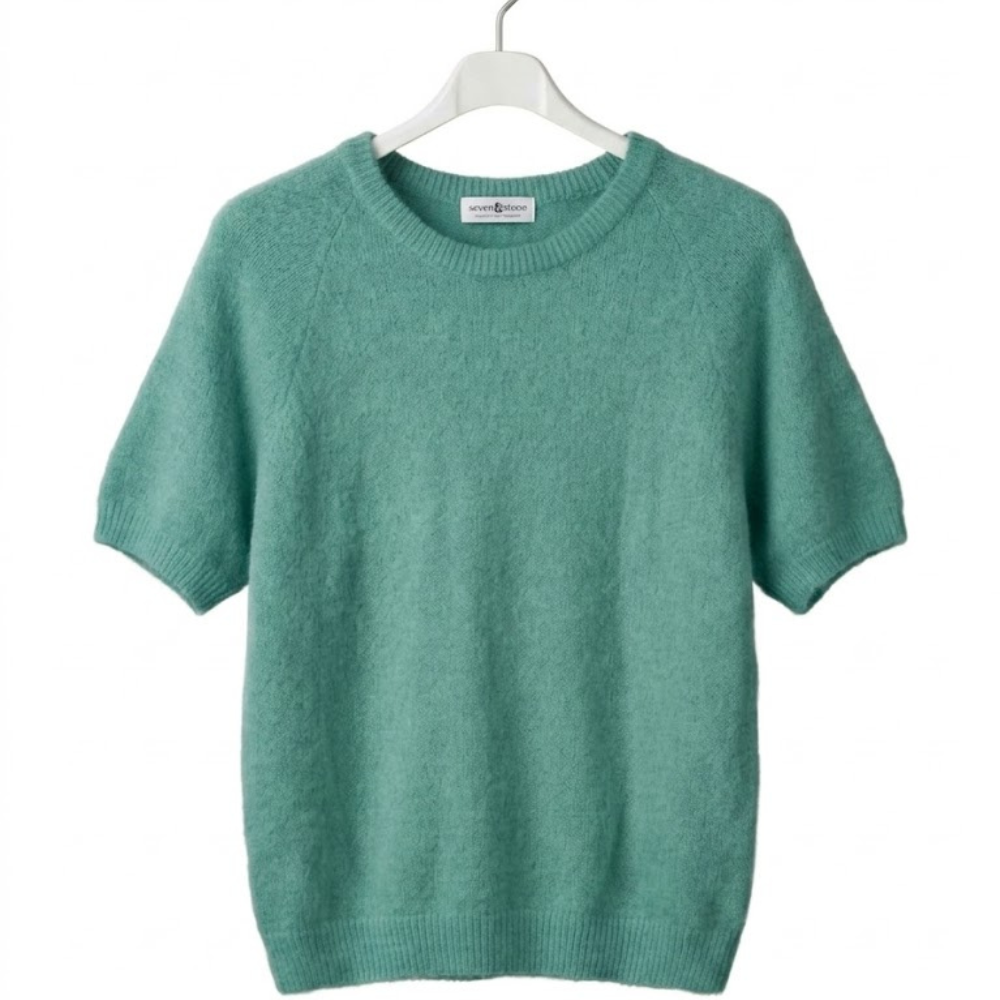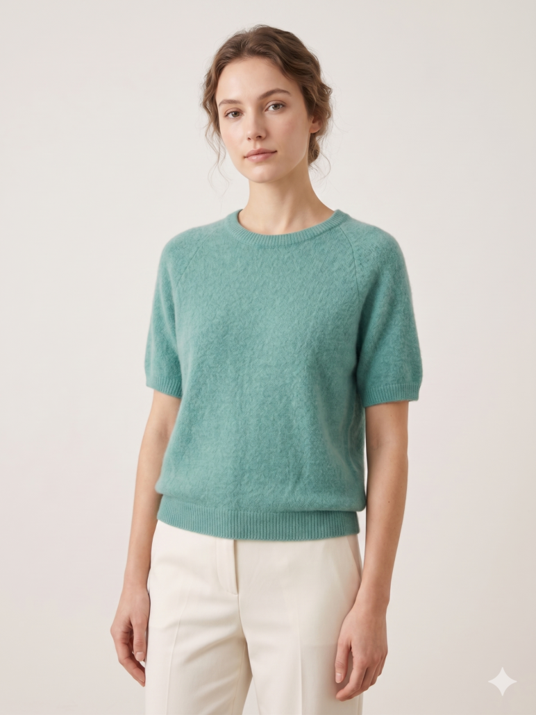 Gebreide dames top korte mouwen – Beige