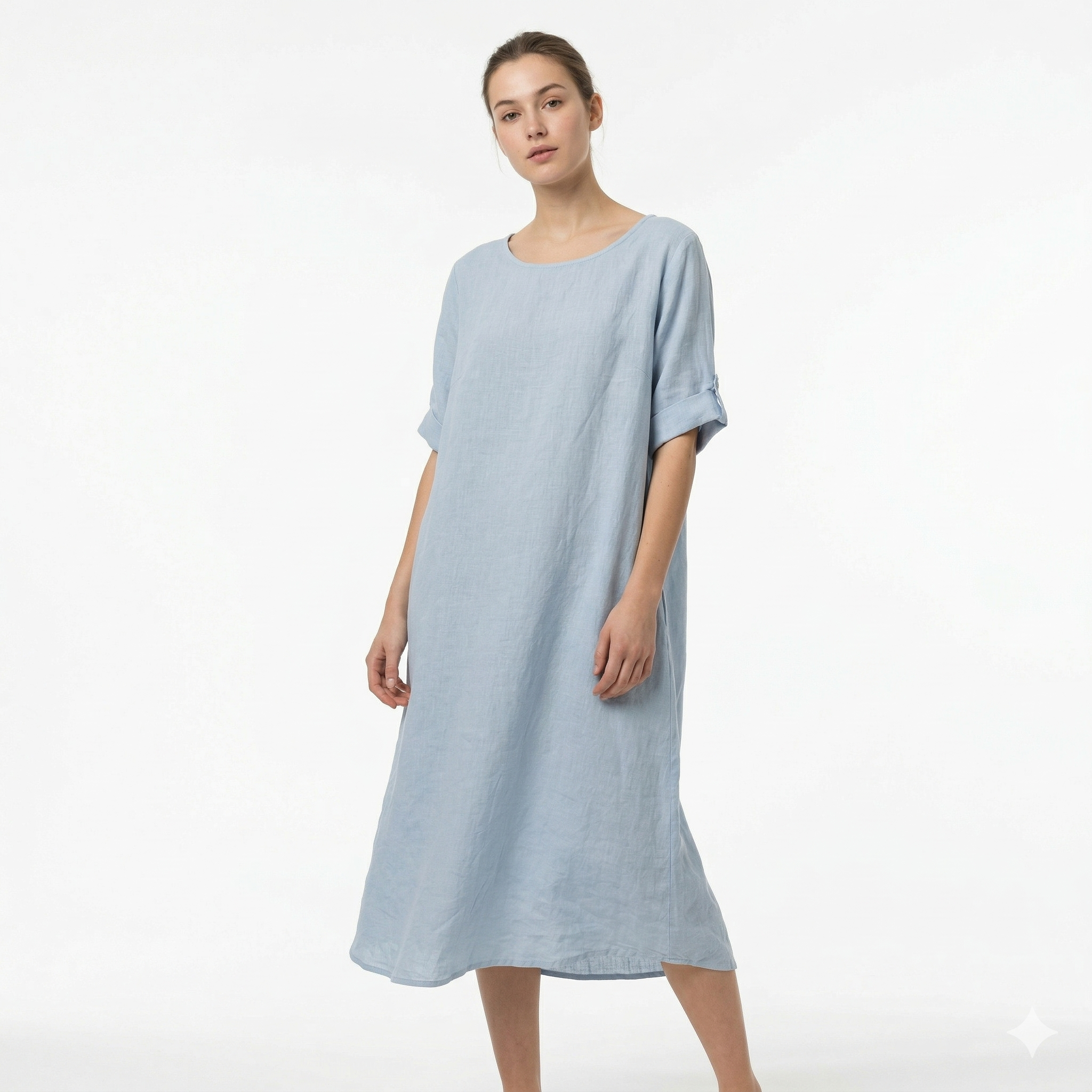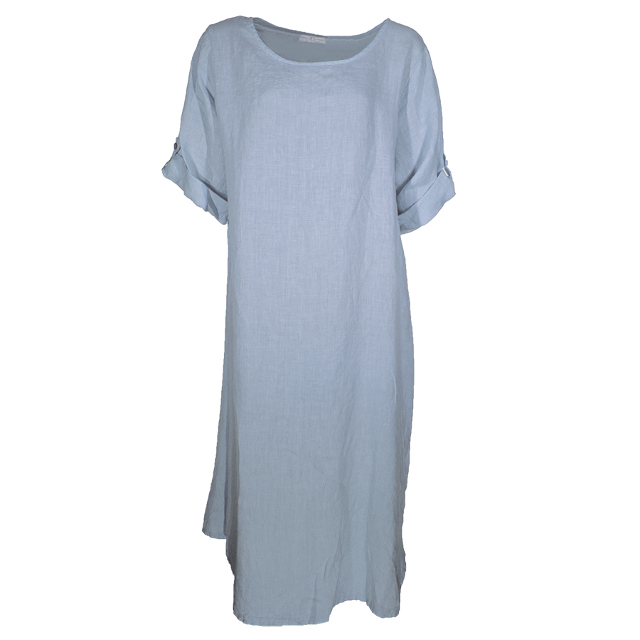 Linen dames jurk korte mouwen – Licht Blauw