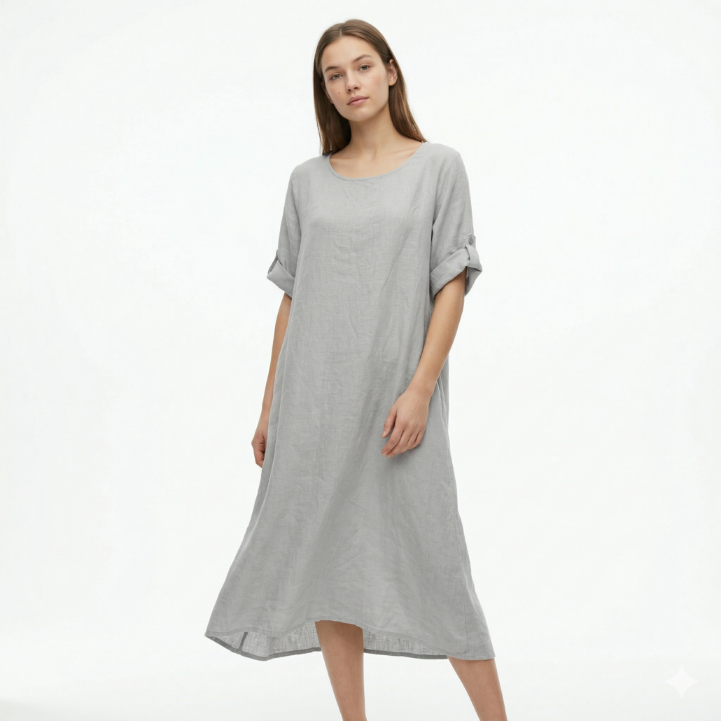 Linen dames jurk korte mouwen – Wit